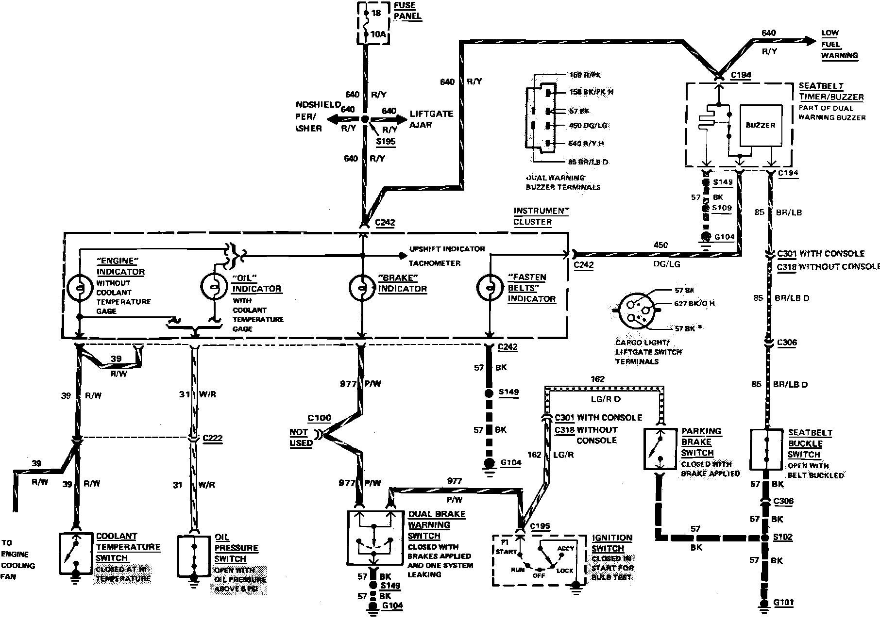 Fig. 8 Brake, Engine, Oil, Seat Belt & Tailgate Ajar Warning Indicator Wiring Circuit (Part 2 of 2). Gasoline Engine: