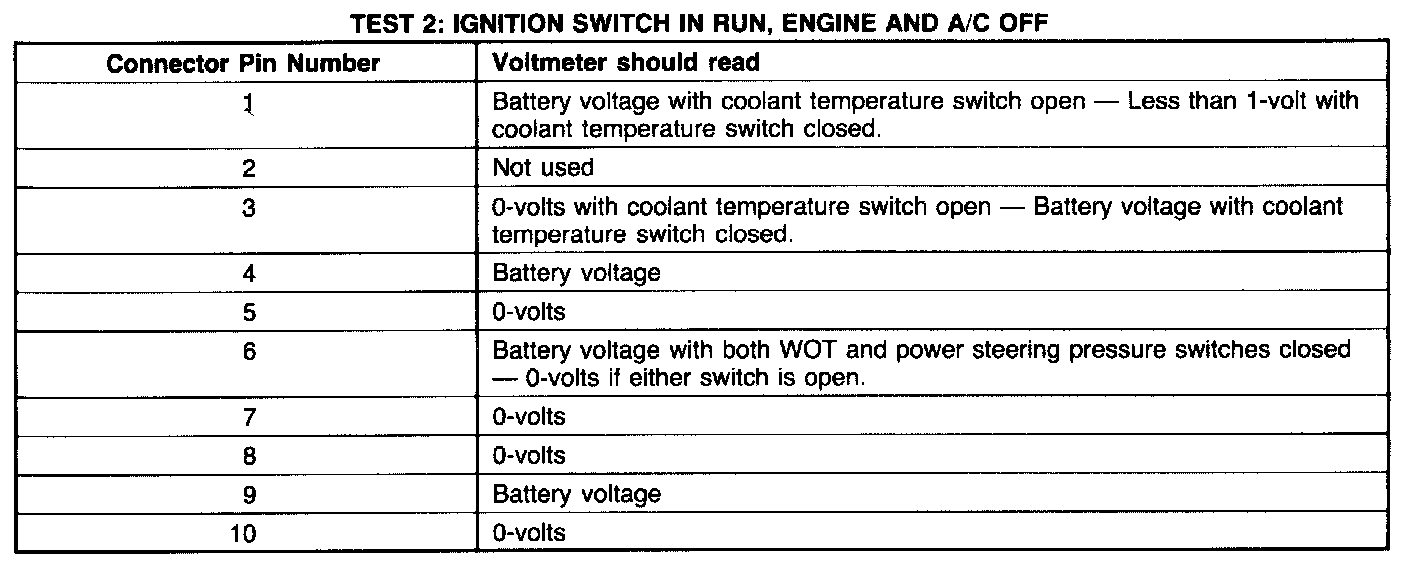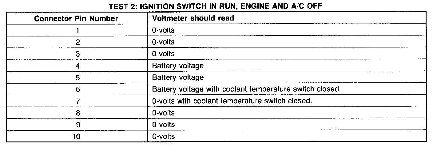 Test 2: Ignition Switch In RUN, Engine And A/C OFF: