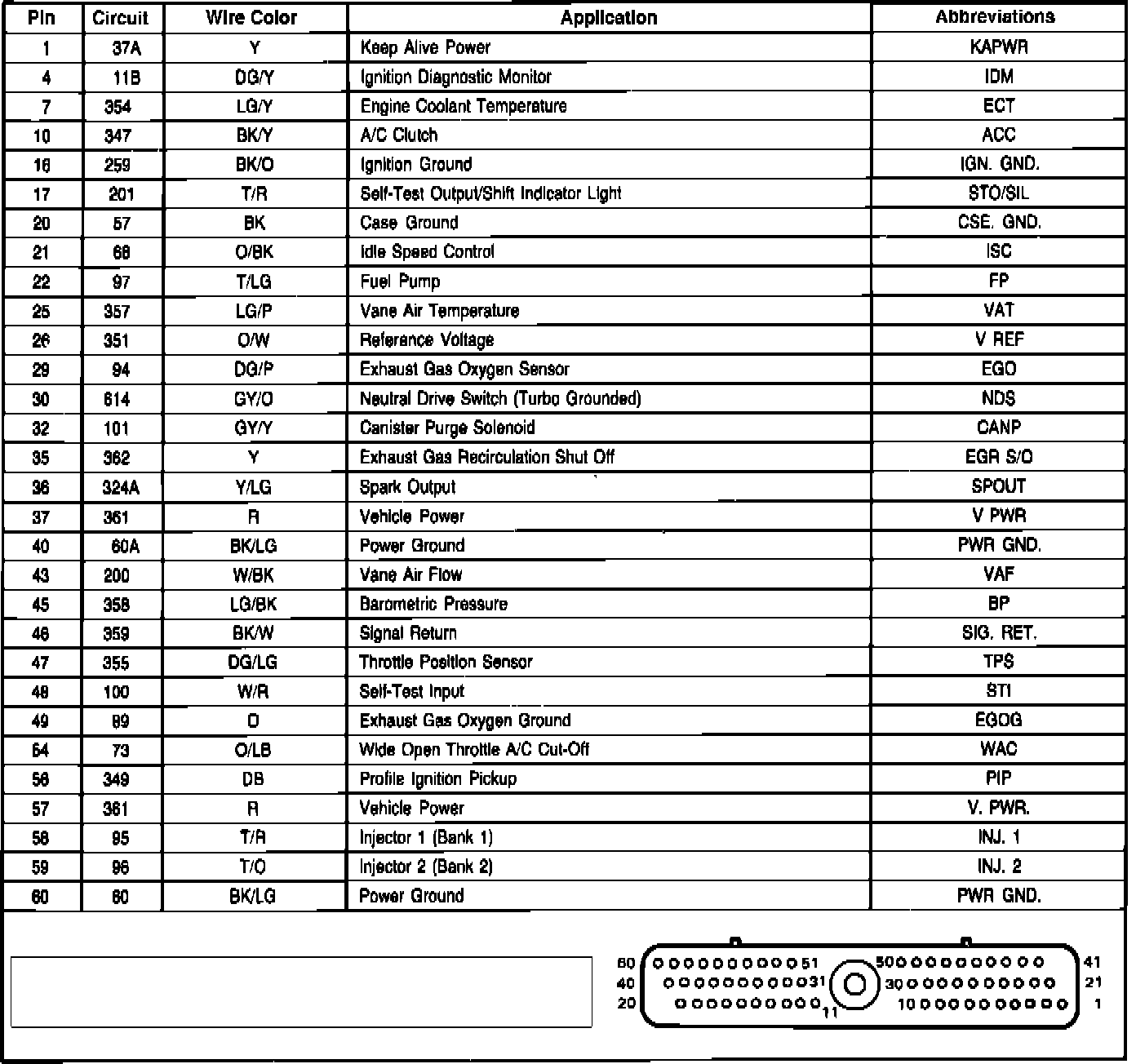 Fig. 215 EEC-IV module connector pin usage. 1986 4-116 EFI engine: