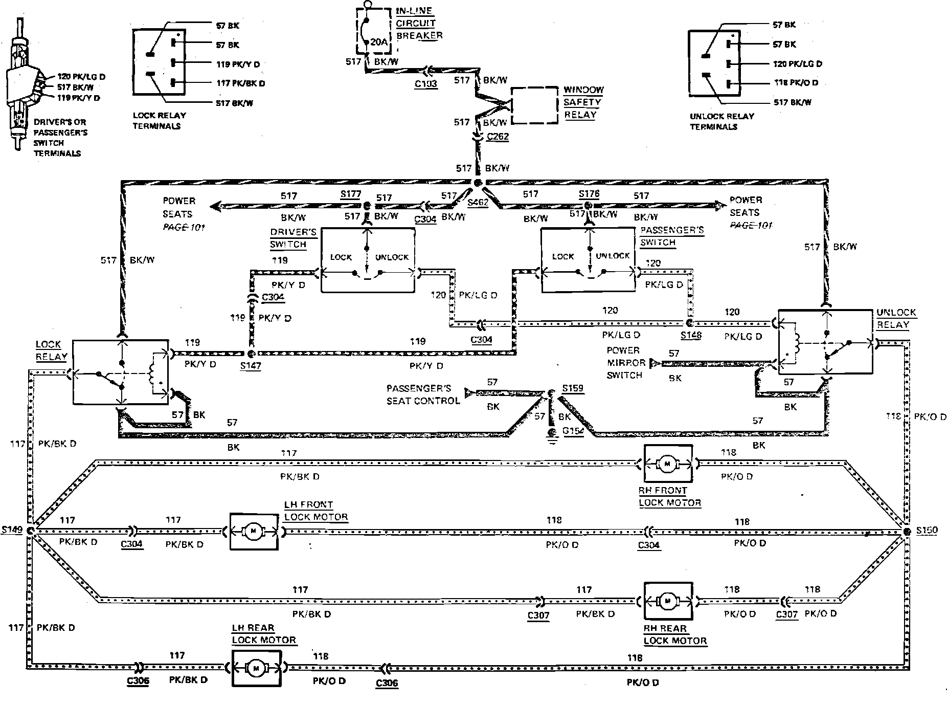 Fig. 29 Power Door Lock Wiring Circuit. LTD & Marquis: