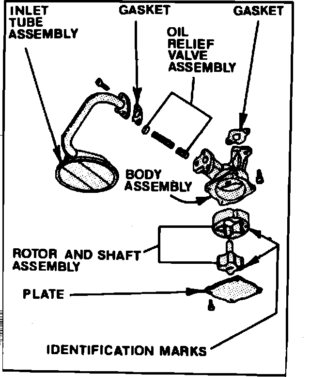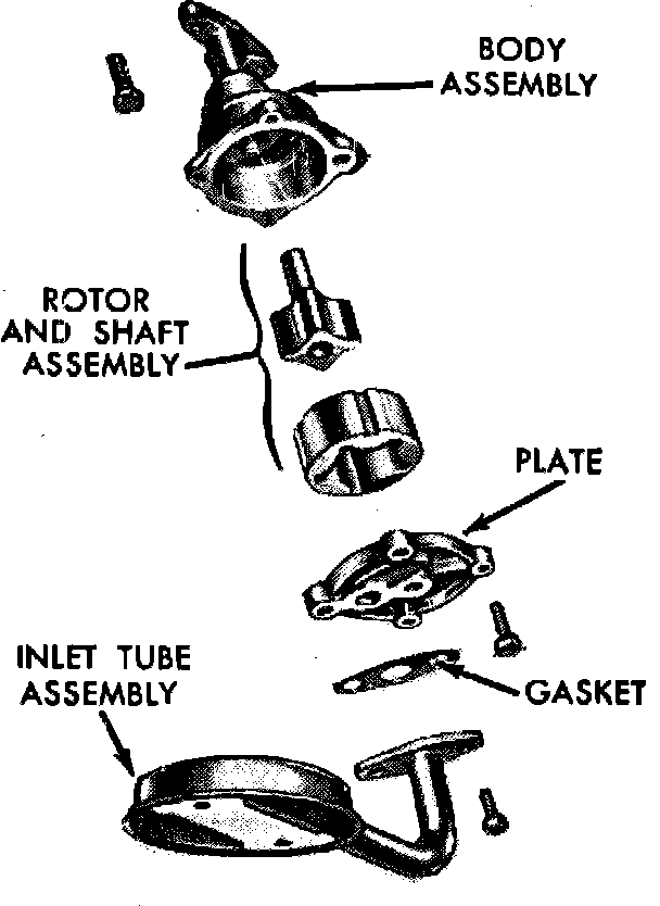 Referring to Figs. 36 through 38, disassemble pump. To remove the oil pressure relief valve, insert a self-threading sheet metal screw of the proper diameter into the oil pressure relief valve chamber cap and pull cap out of chamber. Remove spring and plunger. The inner rotor and shaft and the outer race are serviced as an assembly. One part should not be replaced without replacing the other.