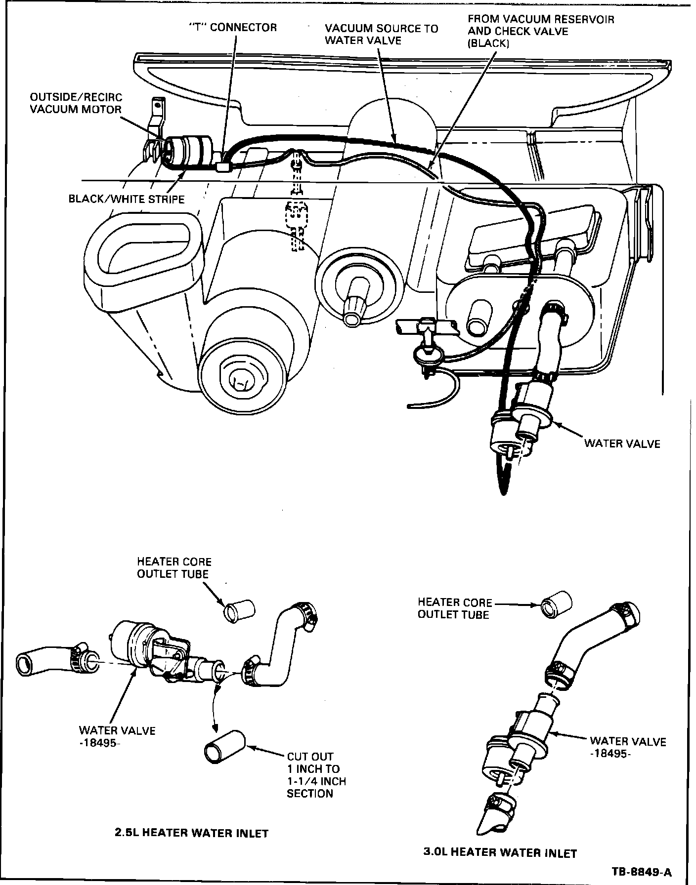 7. If the temperature is below 45~F at an ambient of 70~F, install a water control valve in the heater core inlet hose.