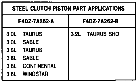 Use the chart for proper application if replacement of the forward clutch piston is necessary.