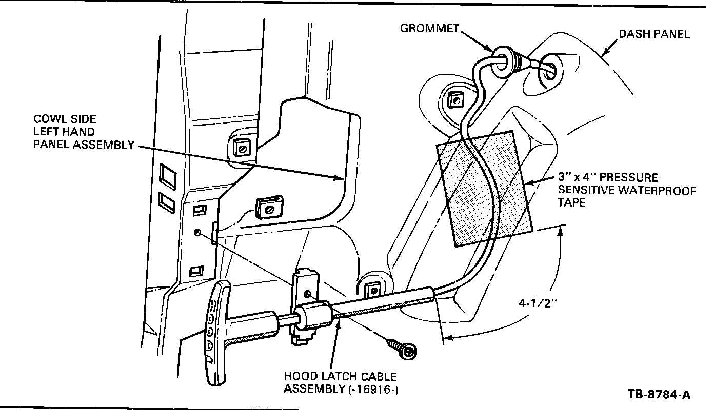 4. Operate the hood cable handle to assure proper operation.