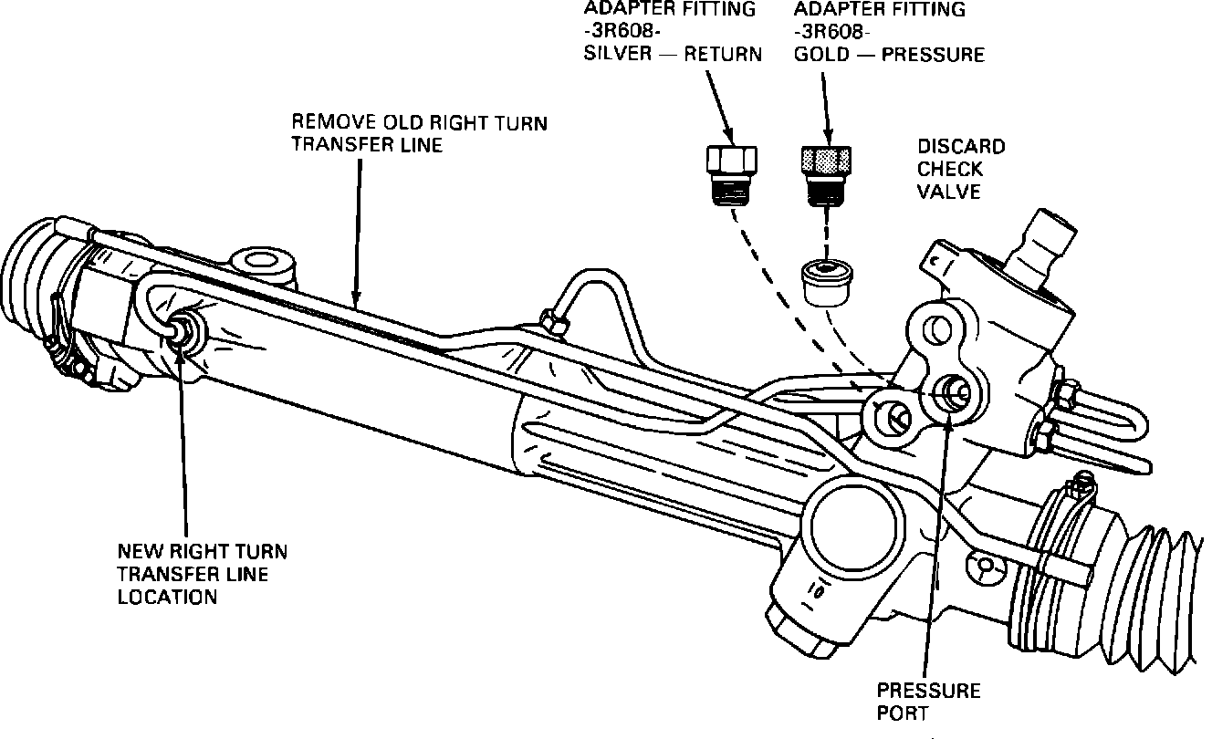 1. Remove and throw away the check valve from the service steering gear, Figure 3. The pressure hose already has a check valve in it.