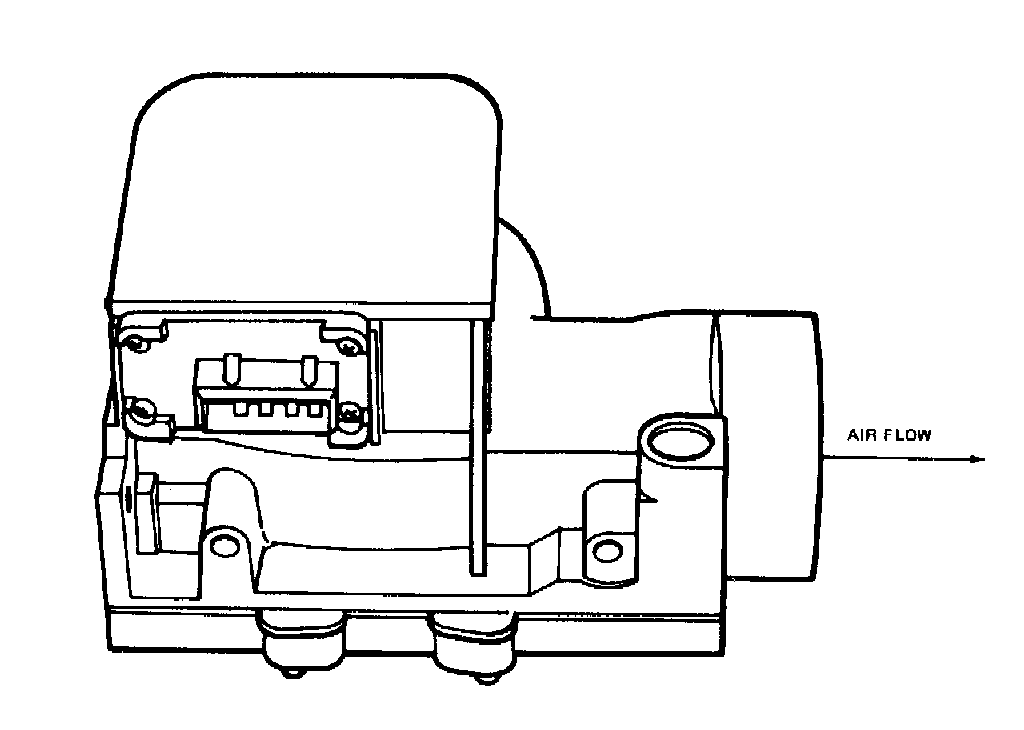 The Vane Air Flow Meter, (Figure 1), measures air flowing into the engine and is mounted between the air cleaner and the air throttle body assembly. The meter contains a movable vane directly connected to an electrical device known as a potentiometer. Air, rushing through the vane air flow meter, changes the position of the vane and the potentiometer. The potentiometer relays vane position information to the EEC IV module. The EEC IV module can then translate vane position information into the amount of air flowing into the engine.