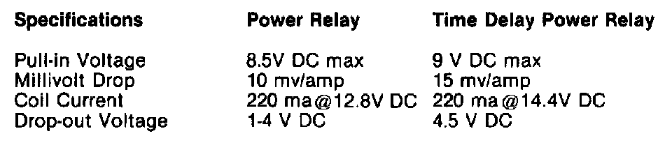 There are two types of relays: the power relay and the time delay power relay. The time delay relay has a delay of 5 to 10 seconds and is used with an actuator assembly throttle control. Both relay types consist of a movable contact in the normally open position. All power relays (except time delay) have the same design with a different bracket attachment.
