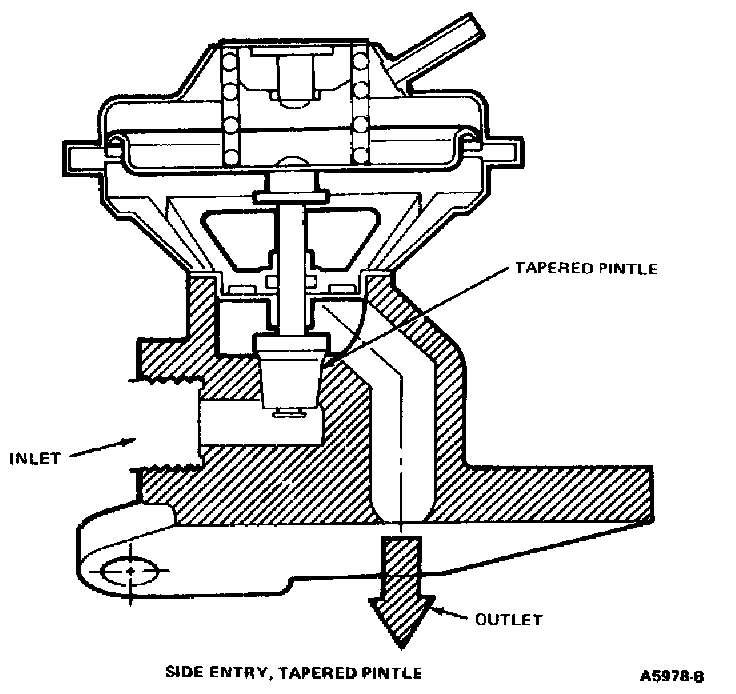 The ported EGR Valve is operated by a vacuum signal (only) from the carburetor EGR port signal which actuates the valve diaphragm. As the vacuum increases sufficiently to overcome the power spring, the valve is opened allowing EGR flow. The amount of flow is dependent on the tapered pintle or the poppet position which is a direct result of vacuum signal.