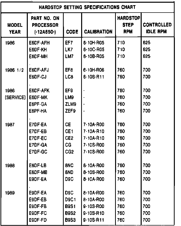 89Ford21IDLE-3.0L-REVISED "HARDSTOP" PROCEDURES AND SPECIFICATIONS