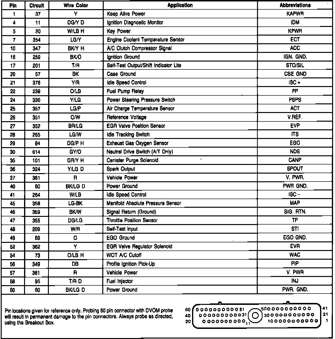 Fig. 222 EEC-IV module connector pin usage. 1986 4-140 high swirl combustion engine W/CFI: