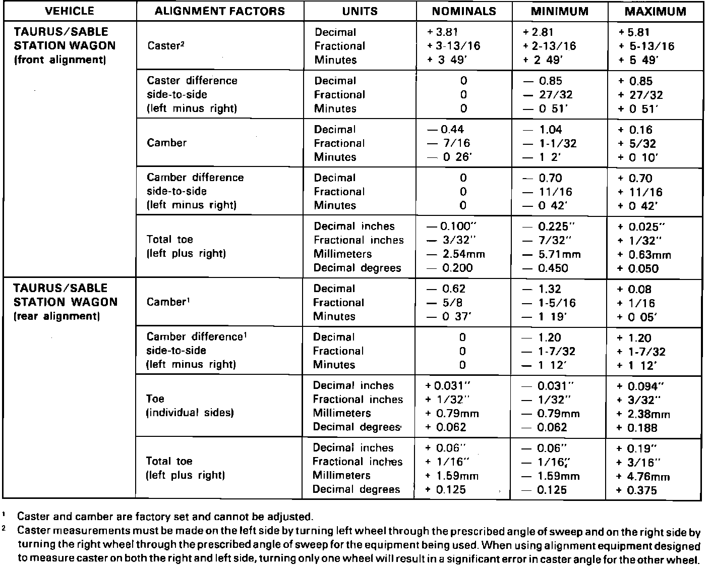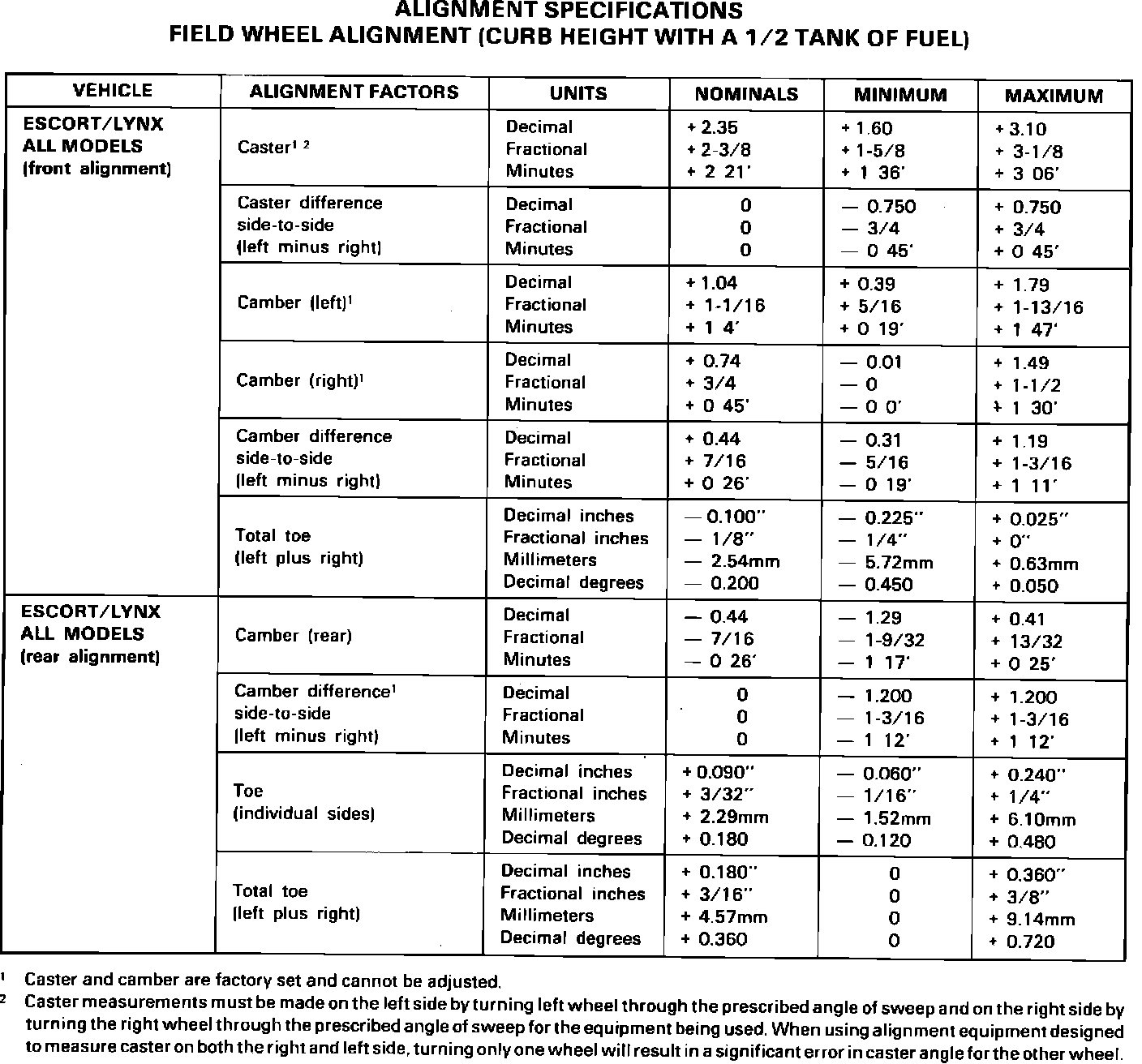86ford24 Article No. 86-2-11SUSPENSION - FRONT END ALIGNMENT SPECIFICATIONS - CAR SHOP MANUAL REVISIONS
