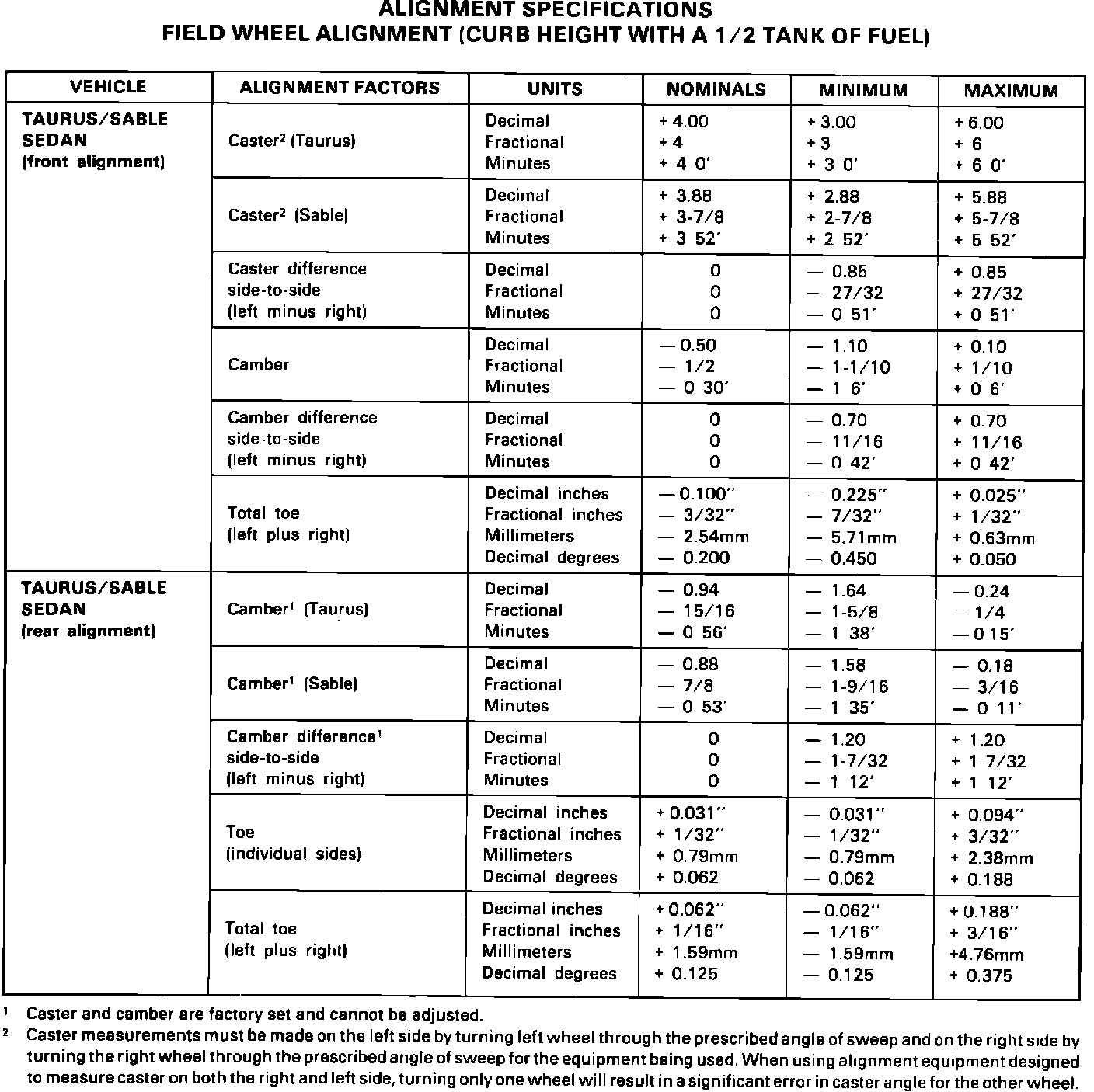 ALIGNMENT SPECIFICATIONS