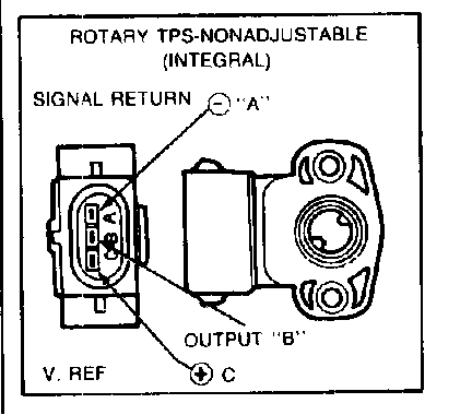 The Throttle Position (TP) Sensor (Rotary), Figure 1 supplies the ECA with a signal proportional to opening angle of carburetor throttle plates.