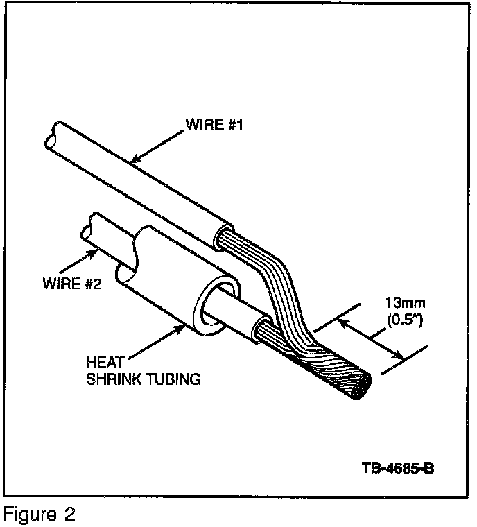 2. Twist and solder the wires (do not forget to install the heat shrink tubing first) (Figure 2). Use rosin core mildly activated (RMA) solder. DO NOT use acid core solder.