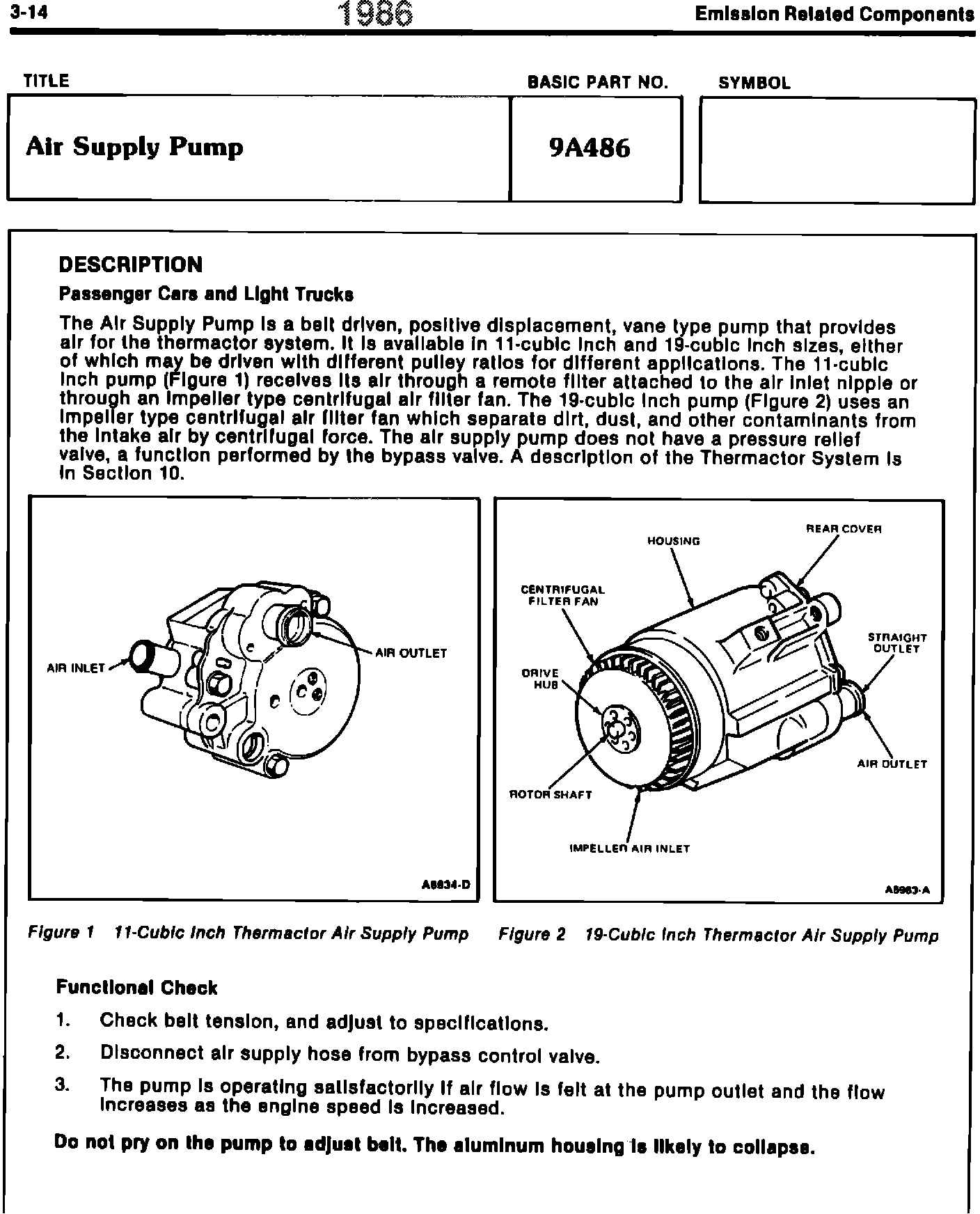 ENGINE/EMISSIONS DIAGNOSIS SHOP MANUAL - 1986 - PAGE 3-13 - FUNCTIONAL CHECK FOR AIR SUPPLY CONTROL VALVES REVISED