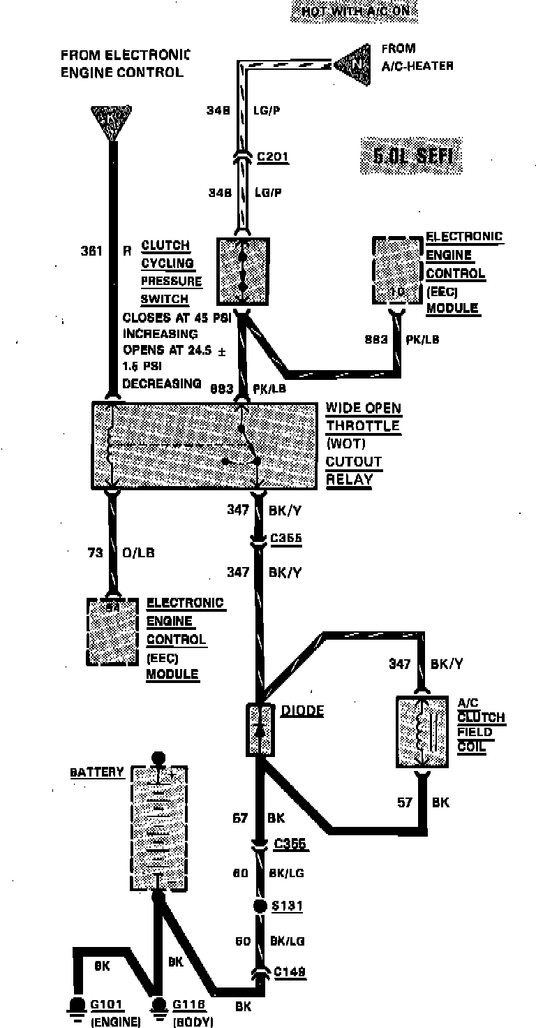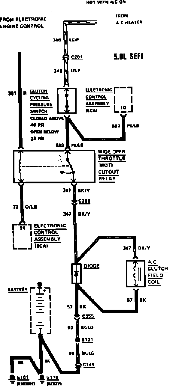 Fig. 37 Compressor Clutch Control Wiring Circuit. V8-302/5.0L Engine: