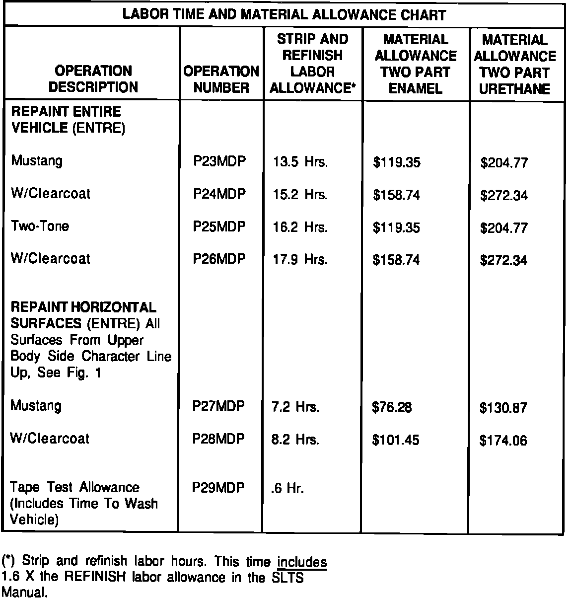 ^ Strip to bare metal allowance (0.6 hr. per hour of refinish time)