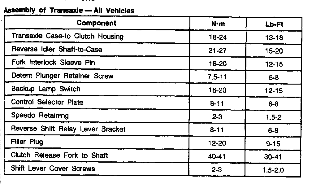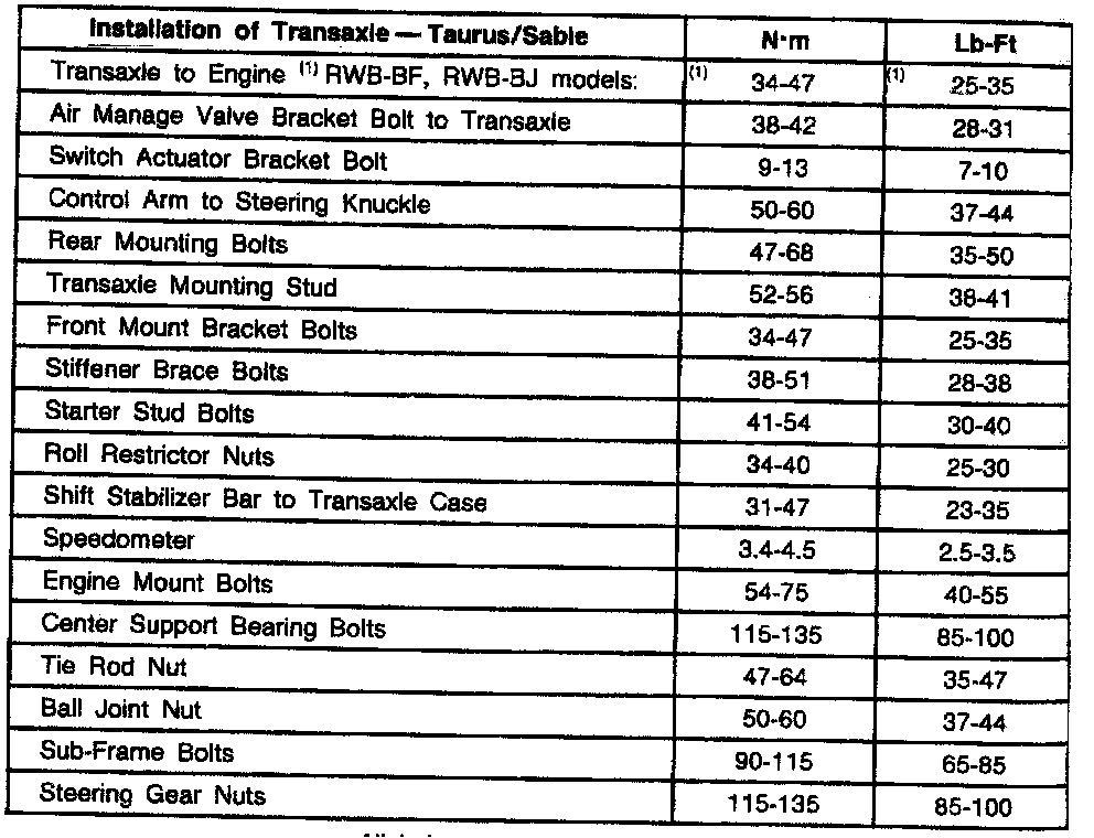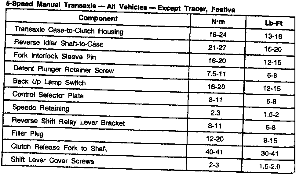 MTX III 5-spd M/T, Transaxle Torque (except Tracer/Festiva):