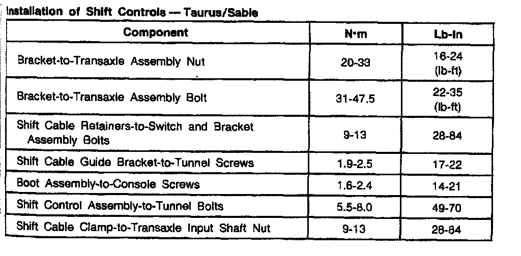 MTX III 5-spd M/T, Installation OF Shift Controls (Taurus/Sable):
