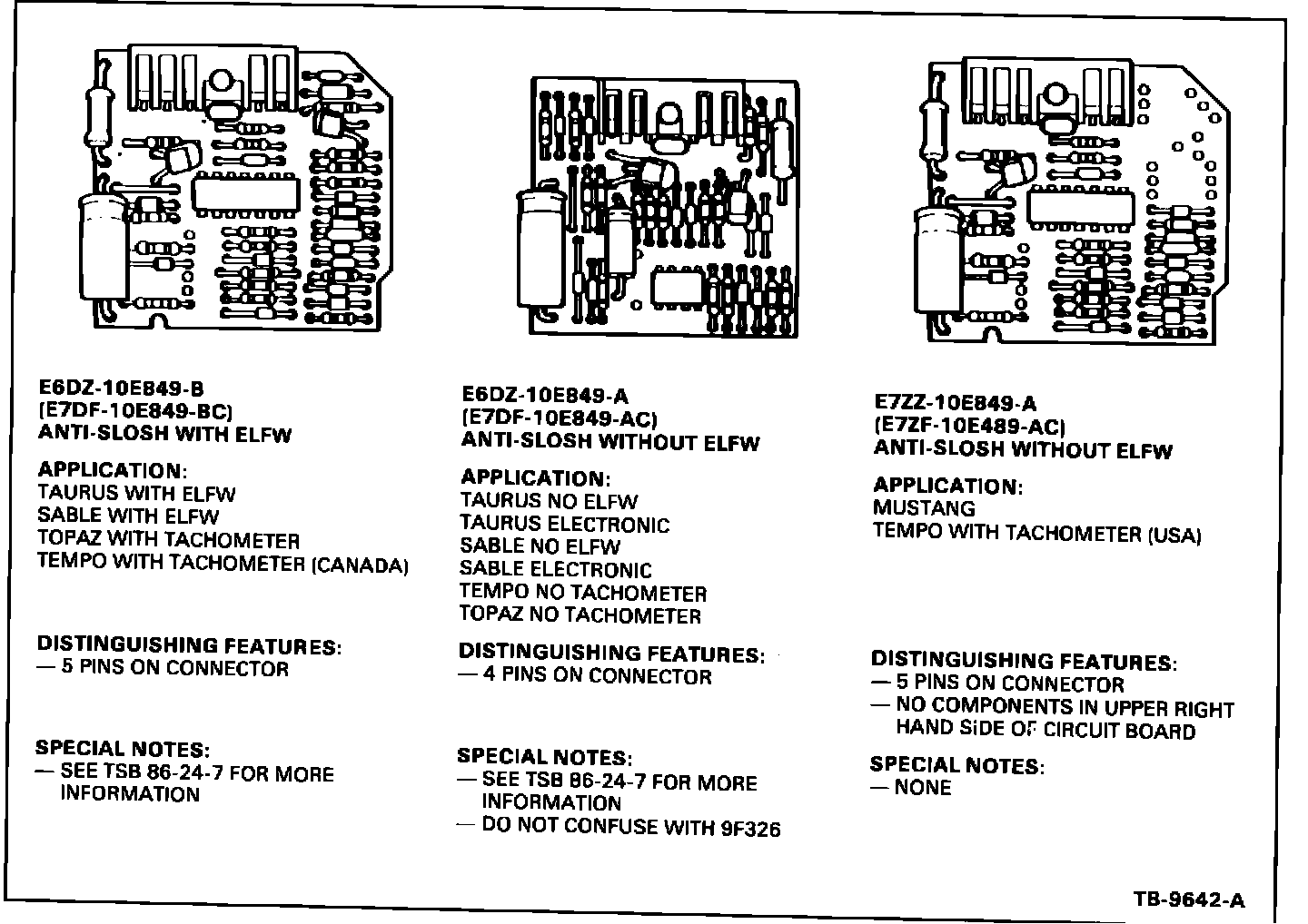ISSUE: Three (3) different types of anti-slosh modules are currently used. The antislosh modules can be identified by part number, physical characteristics and model application.