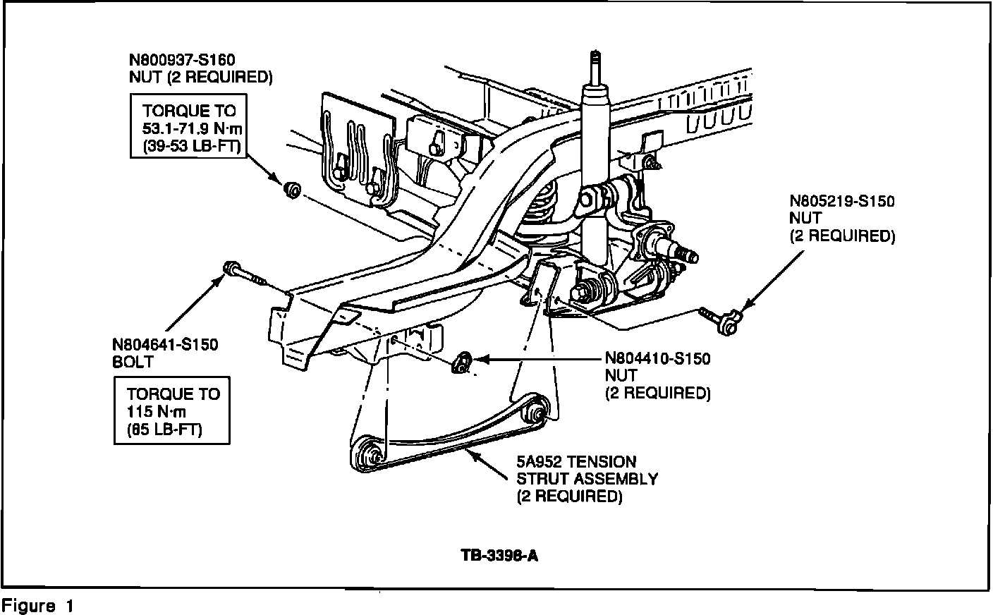 Using a torque wrench, hand tighten the body attaching fastener to 115 N-m (85 lb.ft.), Figure 1. The increased clamp load on the bushing inner sleeve prevents movement, eliminating the noise.