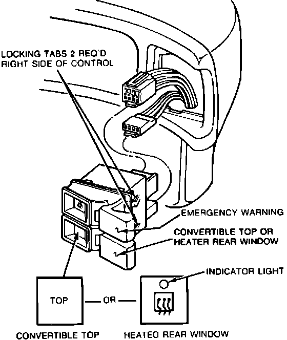 4. To install, install the two connectors to the control and insert control into opening in instrument panel until the locking tabs on both sides of the control snap in place.