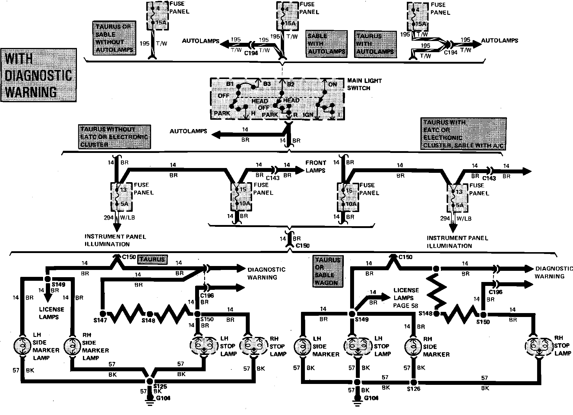 Fig. 19 Exterior Lamps Wiring Circuit. Taurus w/Diagnostic Warning: