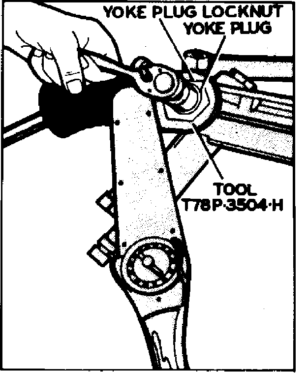 4. Loosen yoke plug locknut using tool No. T78P-3504-H, or equivalent, then loosen yoke plug using a {3-4} in. socket wrench, Fig. 2.