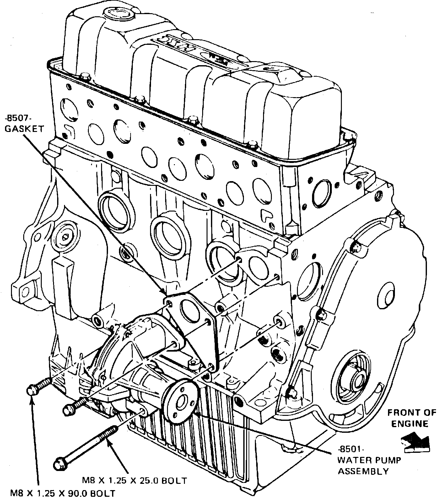 4. Loosen water pump idler pulley bolt and remove belt from water pump pulley.
