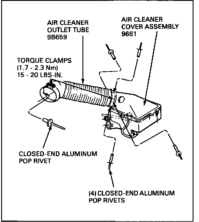 8. Install air outlet tube and air cleaner assembly. Torque the clamp at the throttle body end to 15- 20 in.lbs. (1.7-2.3 N-m).