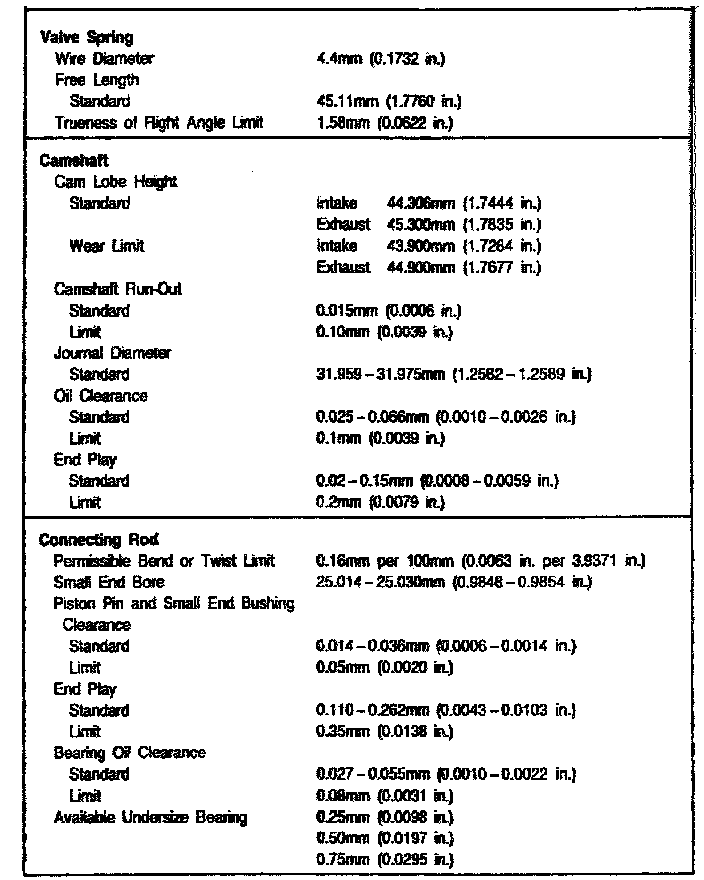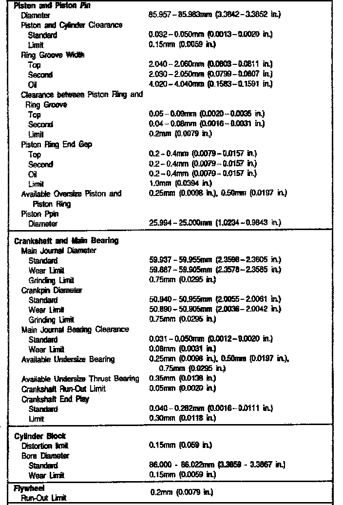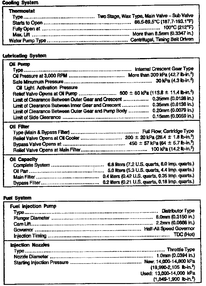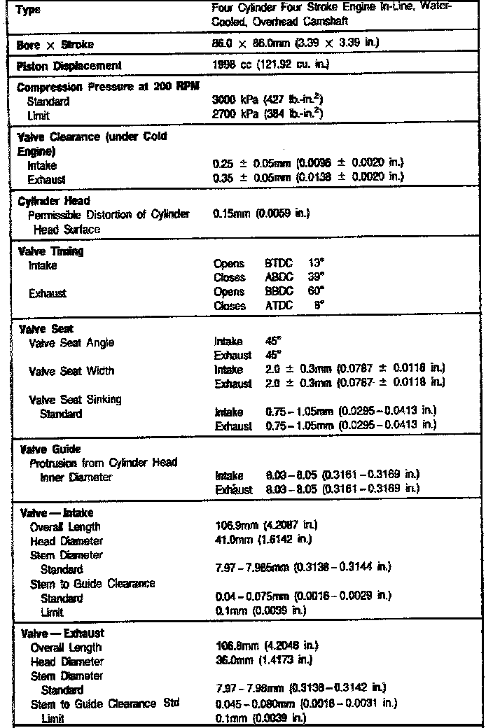 2.0L DSL Engine Mechanical Data: