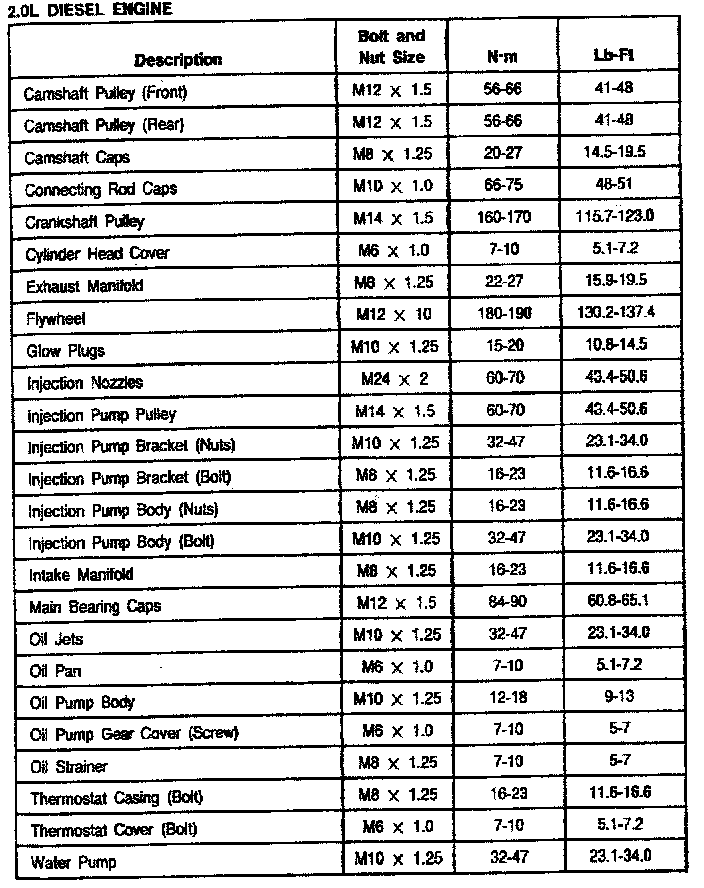 2.0L DSL Engine Mechanical Torque: