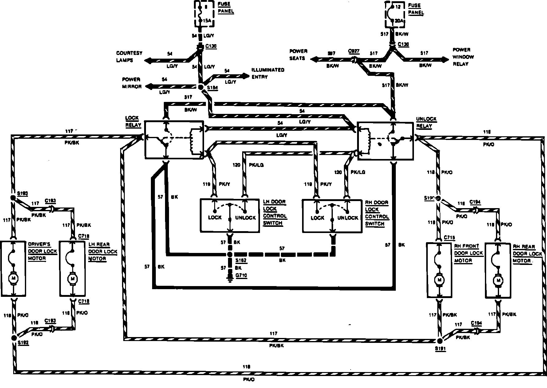 Fig. 35 Power Door Locks Wiring Circuit. 4 Door Models: