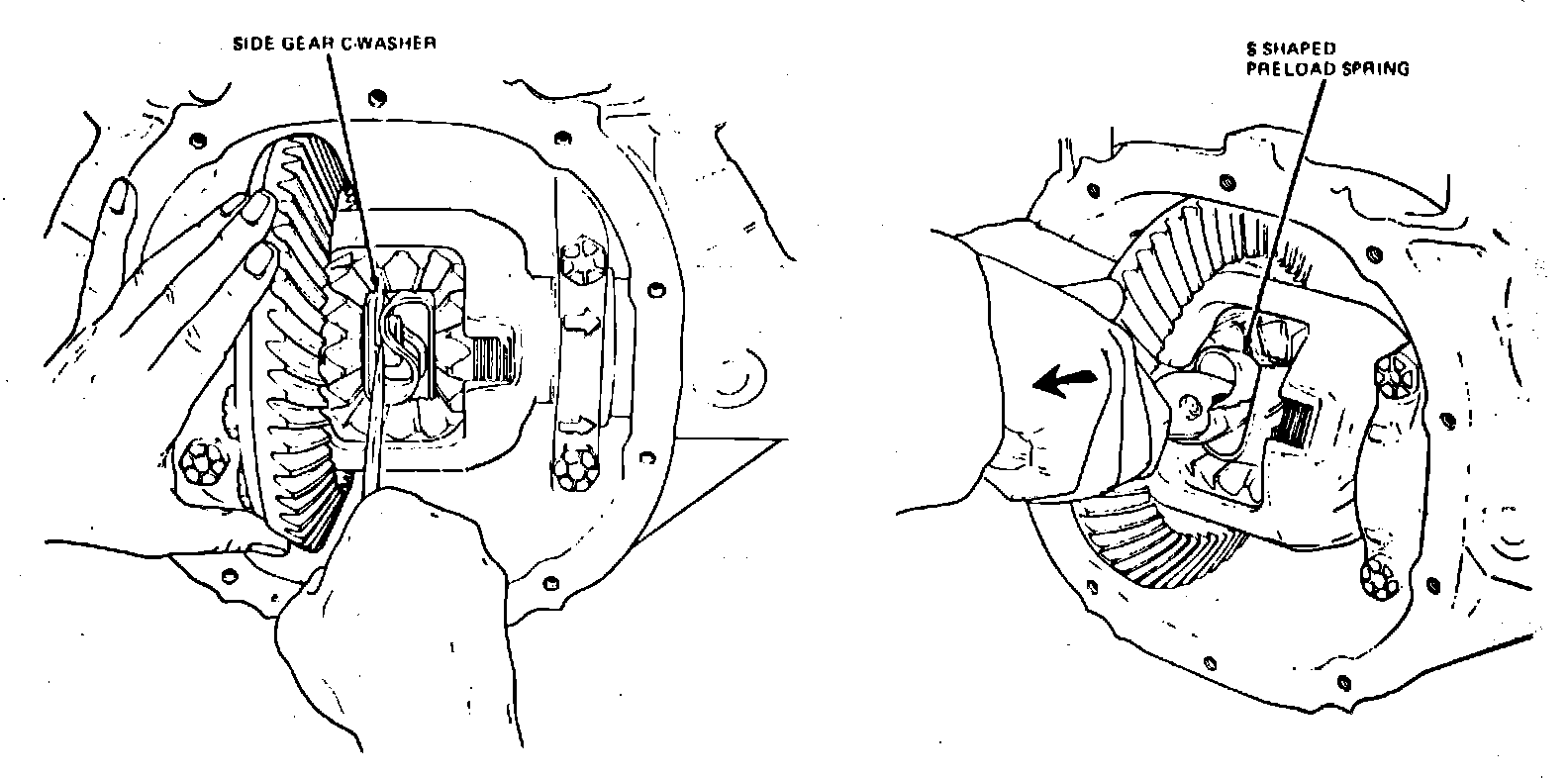 Fig. 3 Removing C-clips and ``S'' shaped preload spring. Ford Traction-Lok: