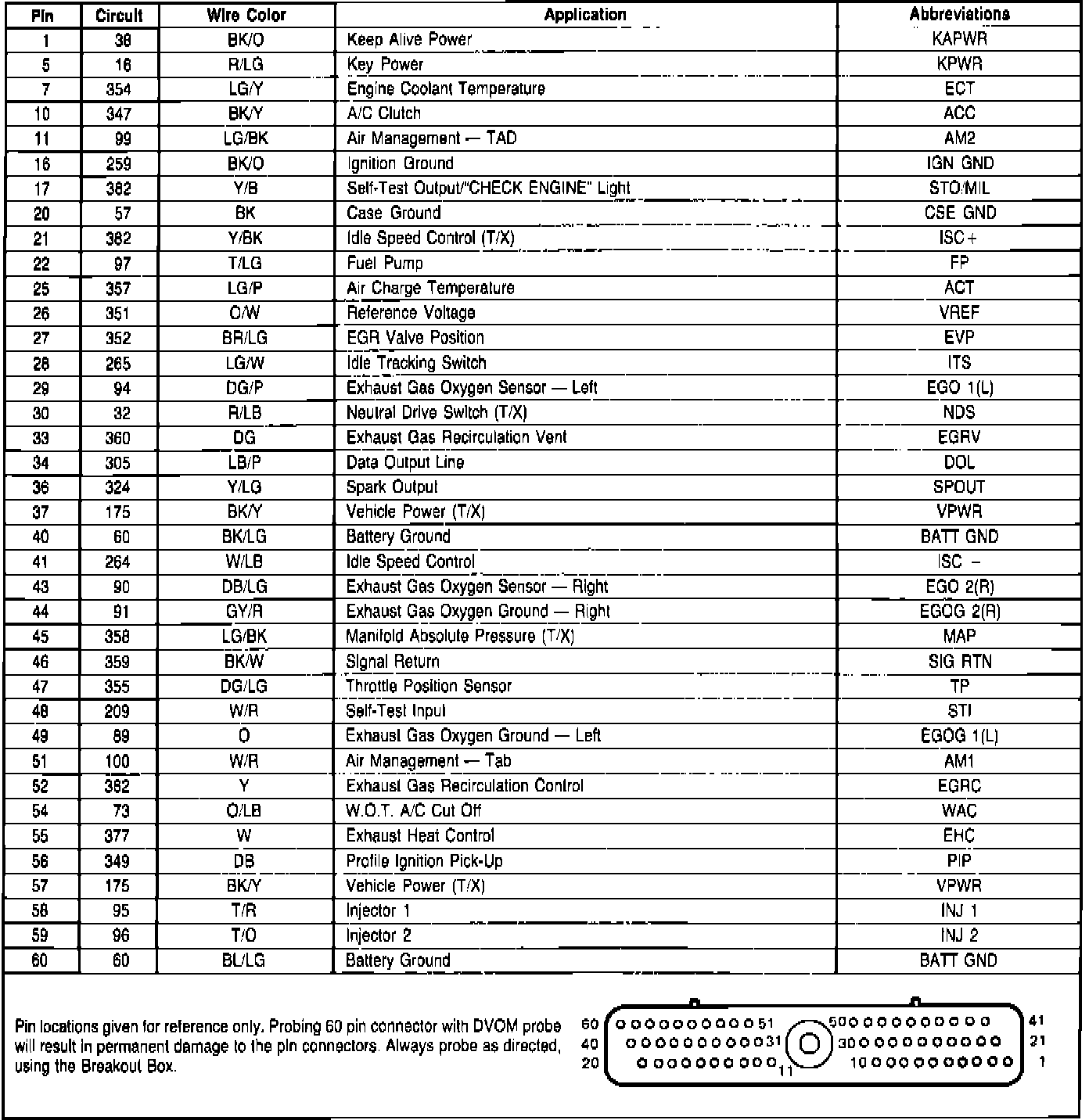 Fig. 317 EEC-IV module connector pin usage. 1987 V6-232 CFI engine:
