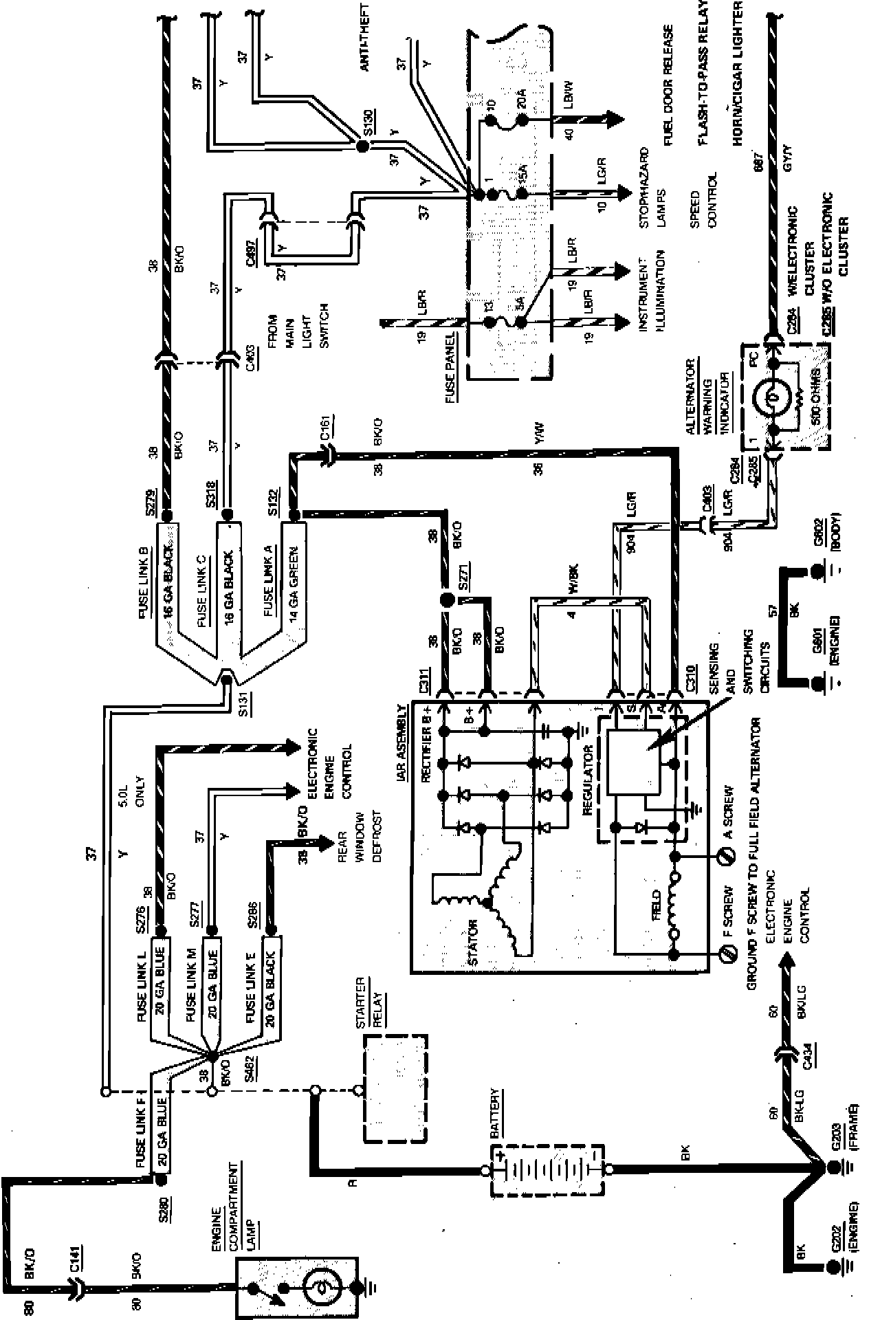 Fig. 15 Charge & Power Distribution Wiring Circuit (Part 1 of 2). V6-230/3.8L Engine:
