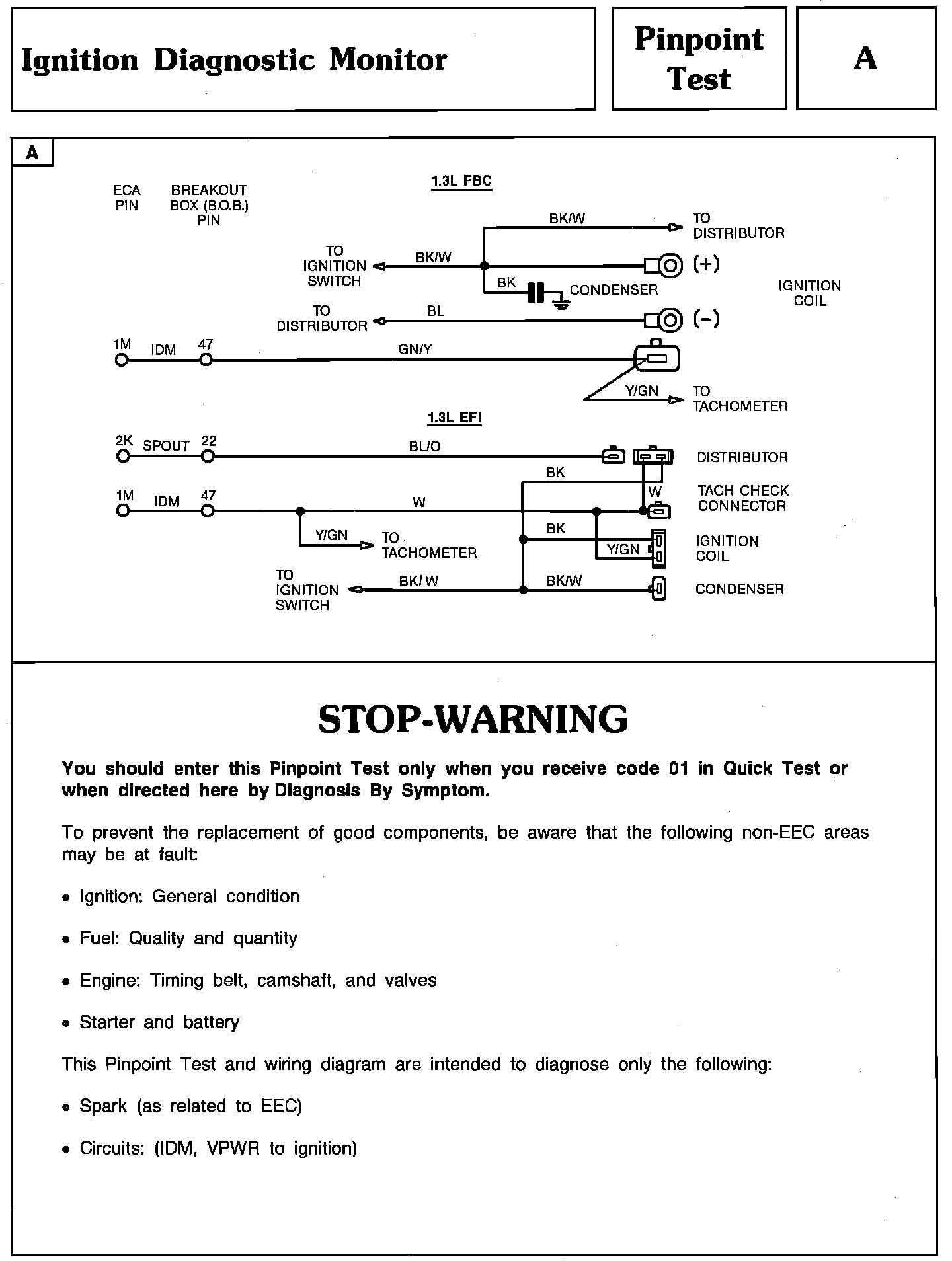 Pinpoint Test A - Ignition Diagnostic Monitor: