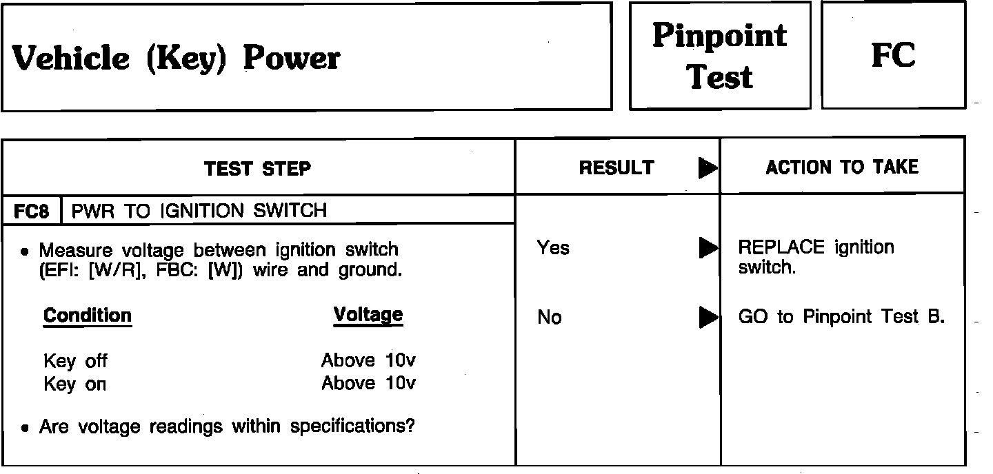 Pinpoint Test FC8 - Vehicle (Key) Power: