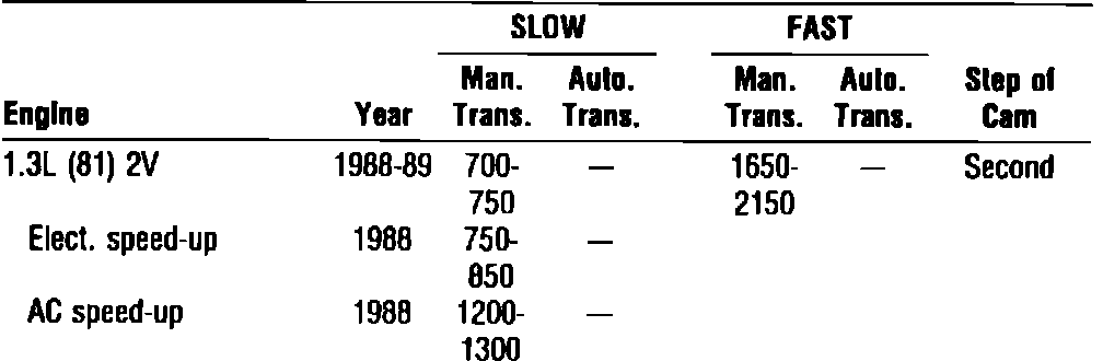 Idle Speed Specifications: