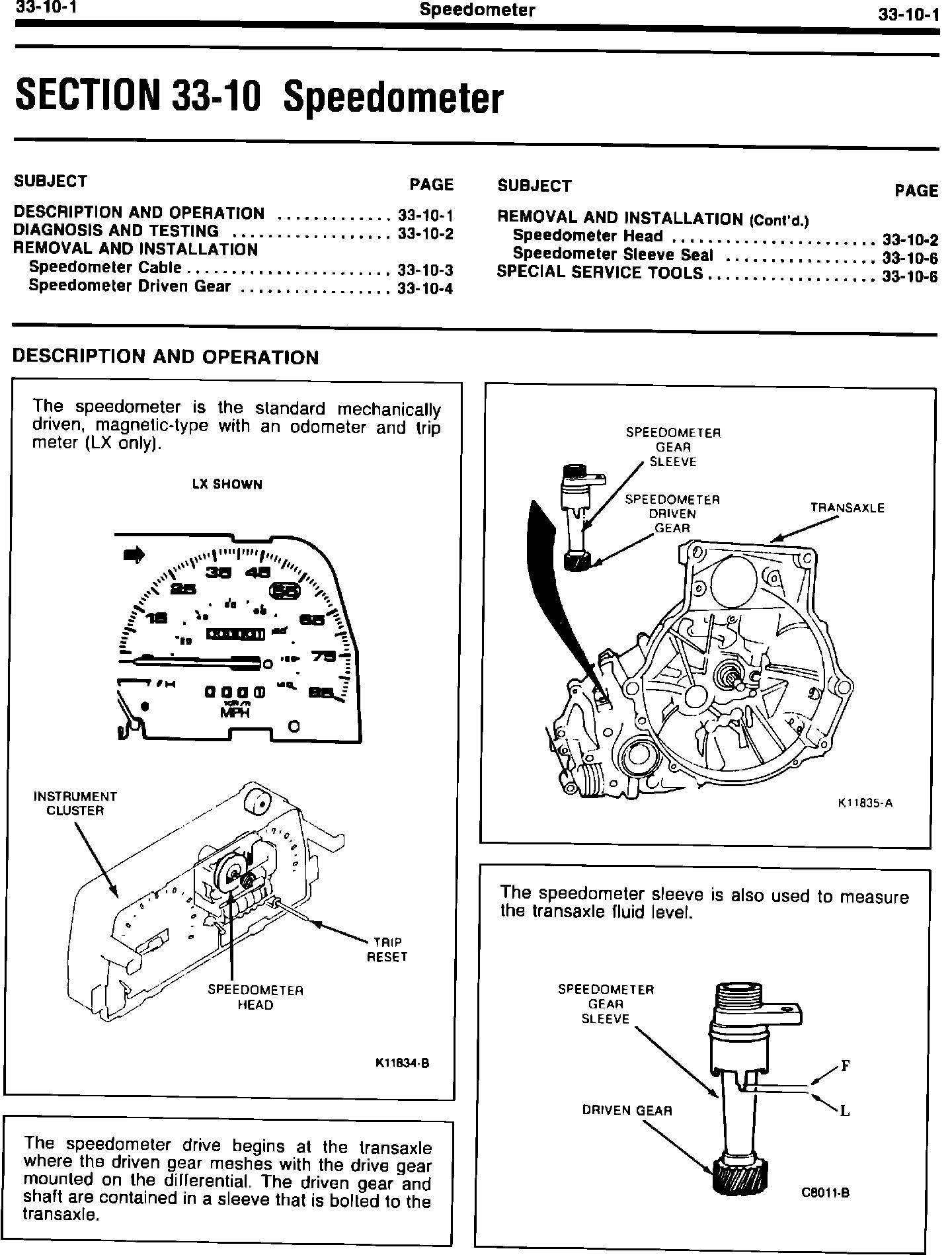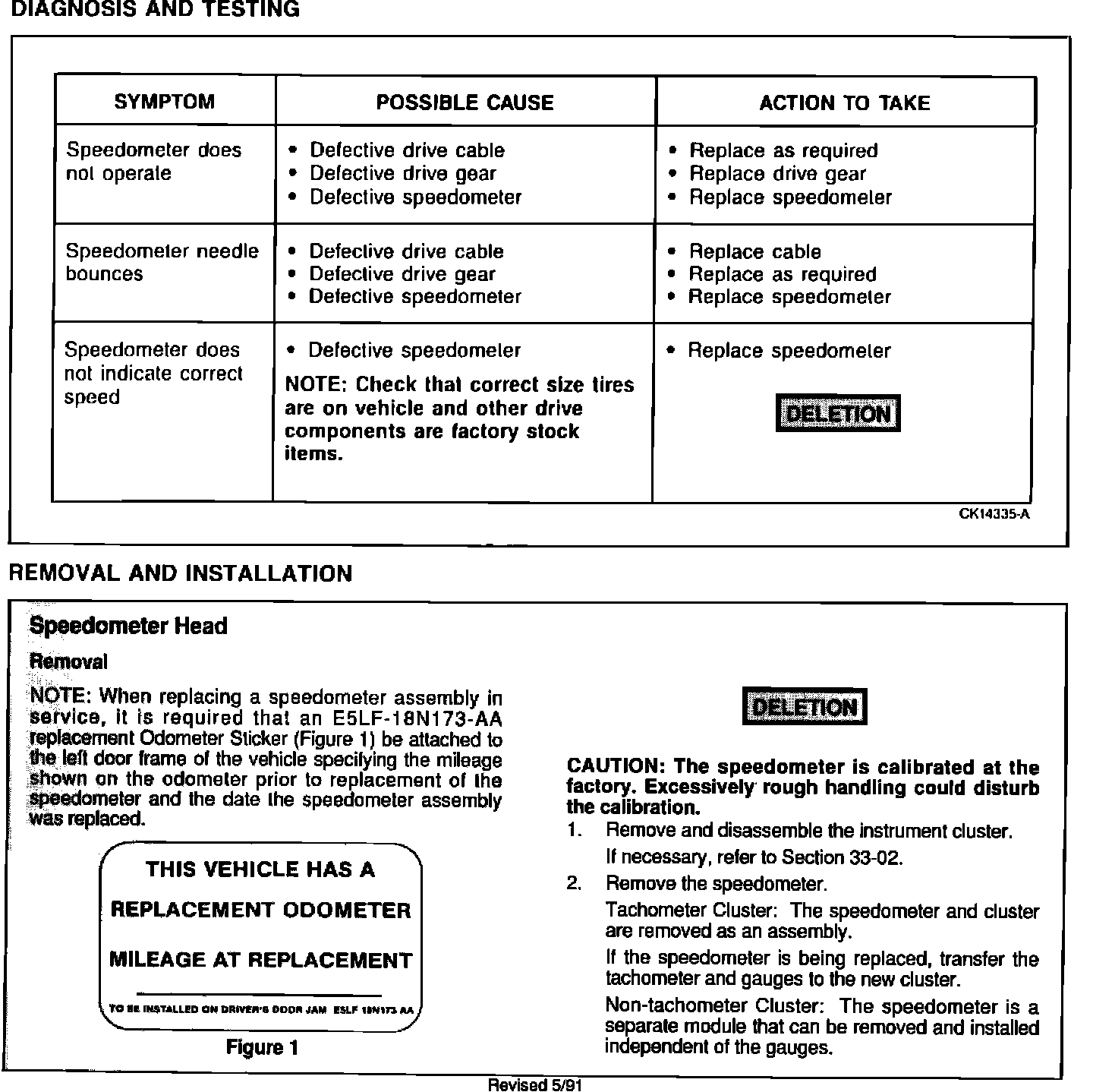 90/91 DIAGNOSIS AND TESTING, R&I, SPEEDO HEAD, AND TROUBLE SHOOTING CHART