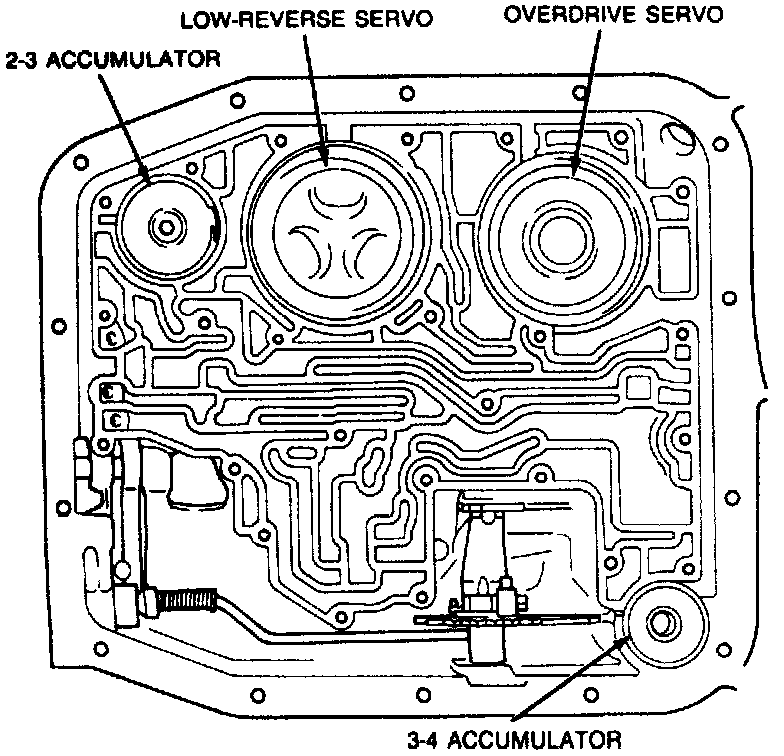12. Remove 2-3 accumulator cover and piston spring, then the 2-3 accumulator piston.