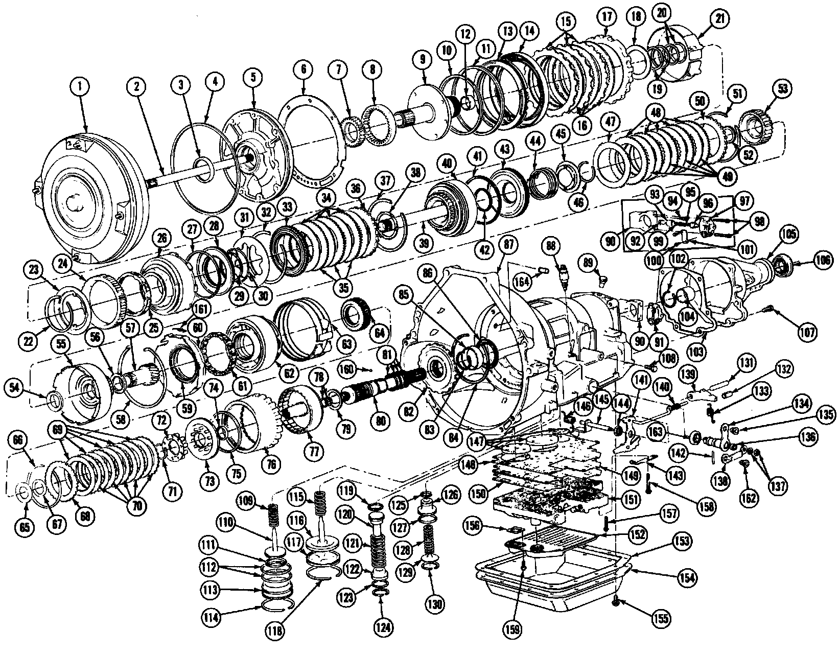 Exploded View Of Ford Automatic Overdrive Transmission, (Part 1 Of 3). 2 Wheel Drive Shown, 4 Wheel Drive Similar: