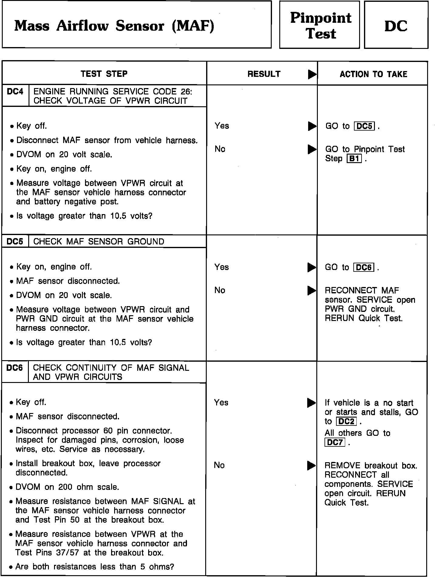 Pinpoint Test DC4 Thru DC6 - Mass Airflow Sensor (MAF):