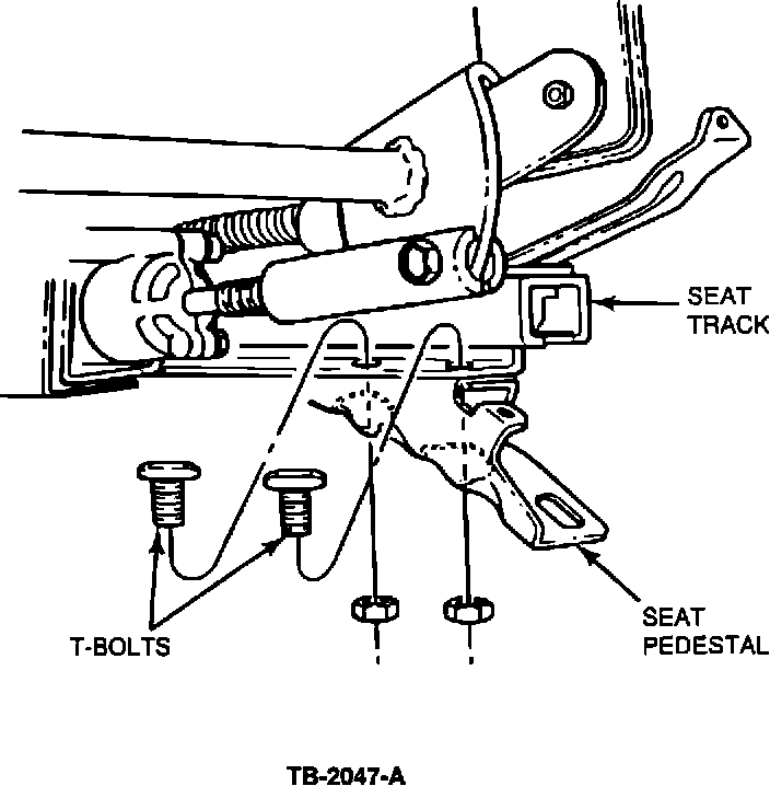 3. Position the new pedestal to seat track and install T-bolts as shown in Figure 2. Tighten T-bolts to 5.5 - 8.0 ft.lb. (7.5-10.5 N-m).