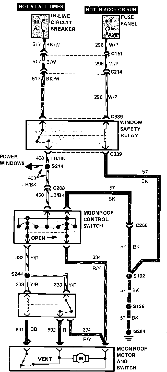 MOONROOF WIRING CIRCUIT: