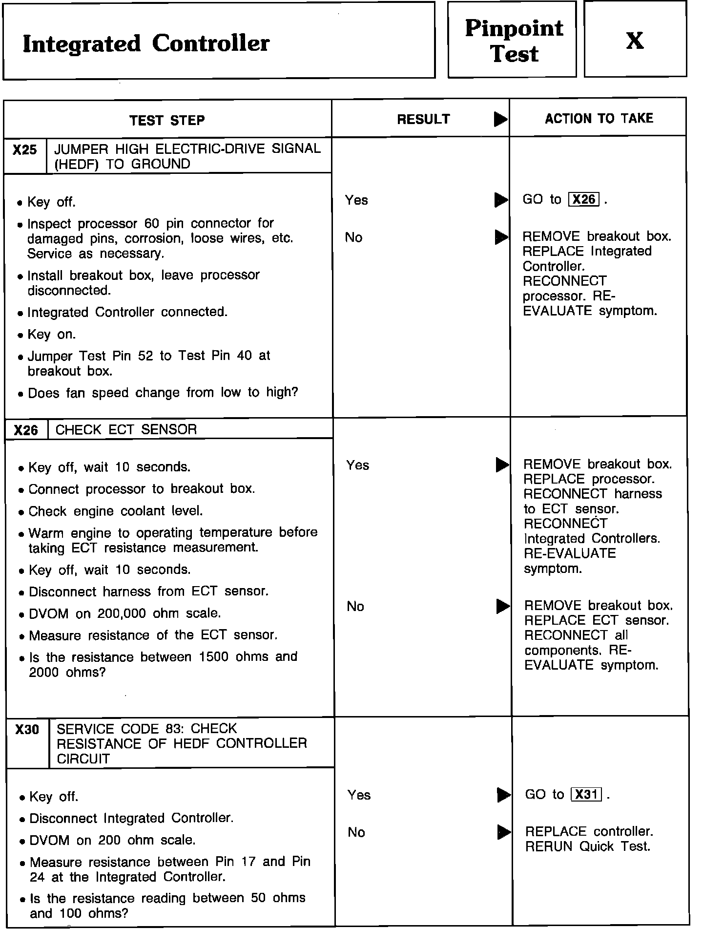 Pinpoint Test X25 Thru X30 - Integrated Controller: