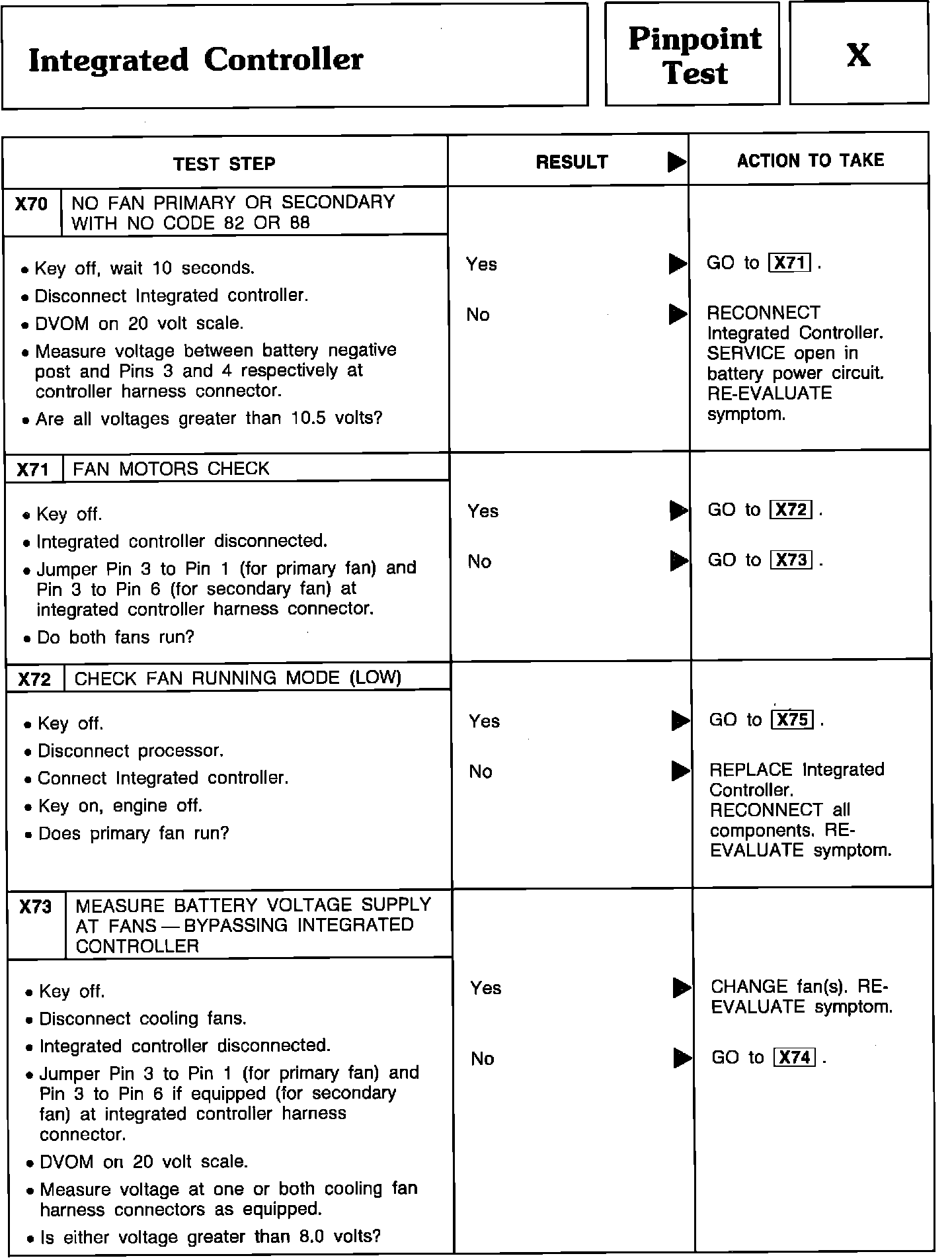 Pinpoint Test X70 Thru X73 - Integrated Controller: