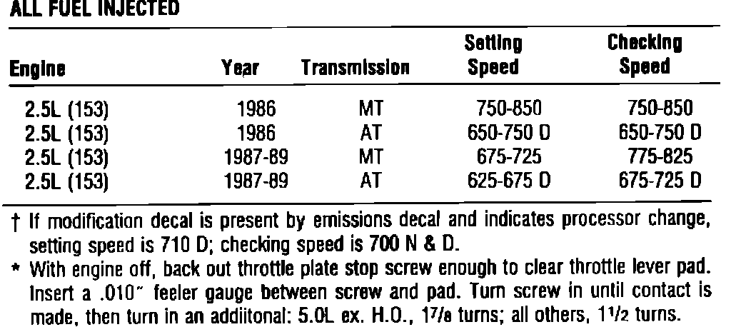 Fuel injected Model, Idle Speed Specifications:
