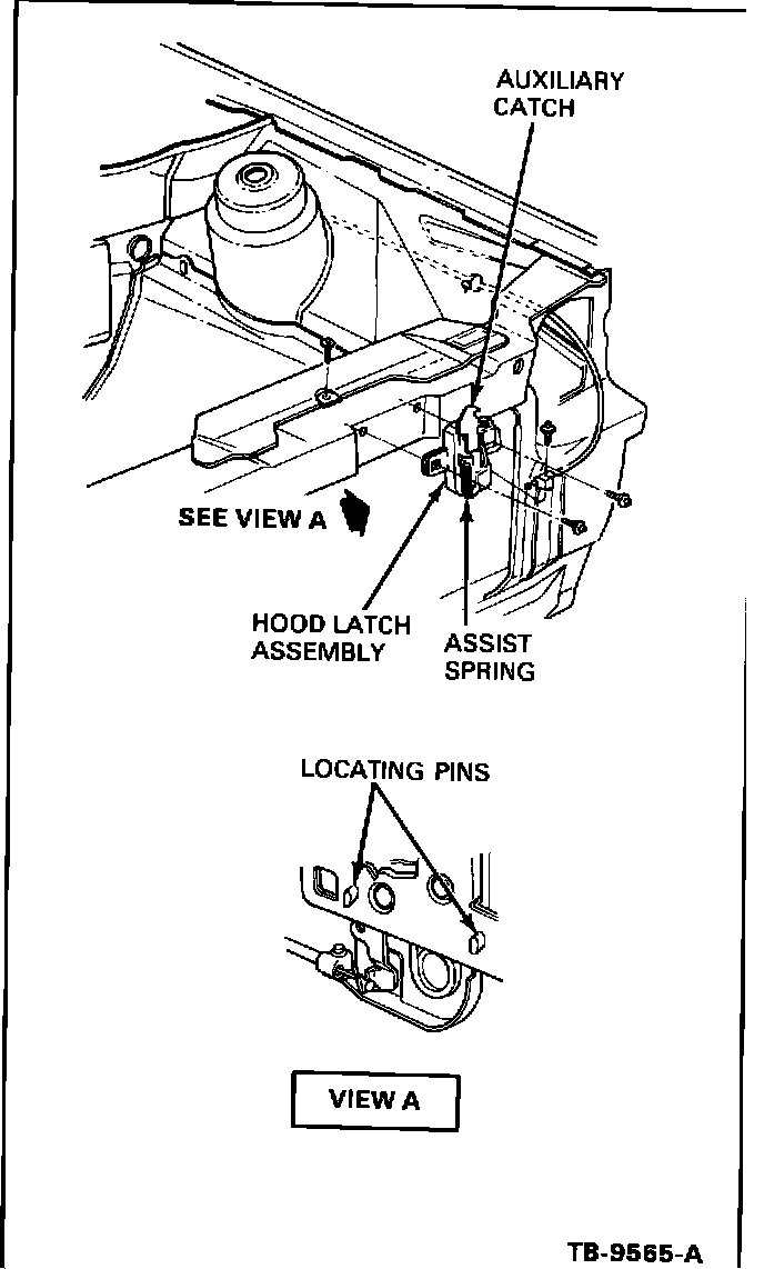 ISSUE: A new design hood latch assembly is available to service 1988 Taurus/Sable vehicles. The new design hood latch incorporates the assist spring and secondary latch as part of the hood latch assembly. It also has two (2) new locating pins to assist in locating the latch during installation. The new latch may be used to service early built 1988 units that do not have holes in the radiator support for the latch locating pins.