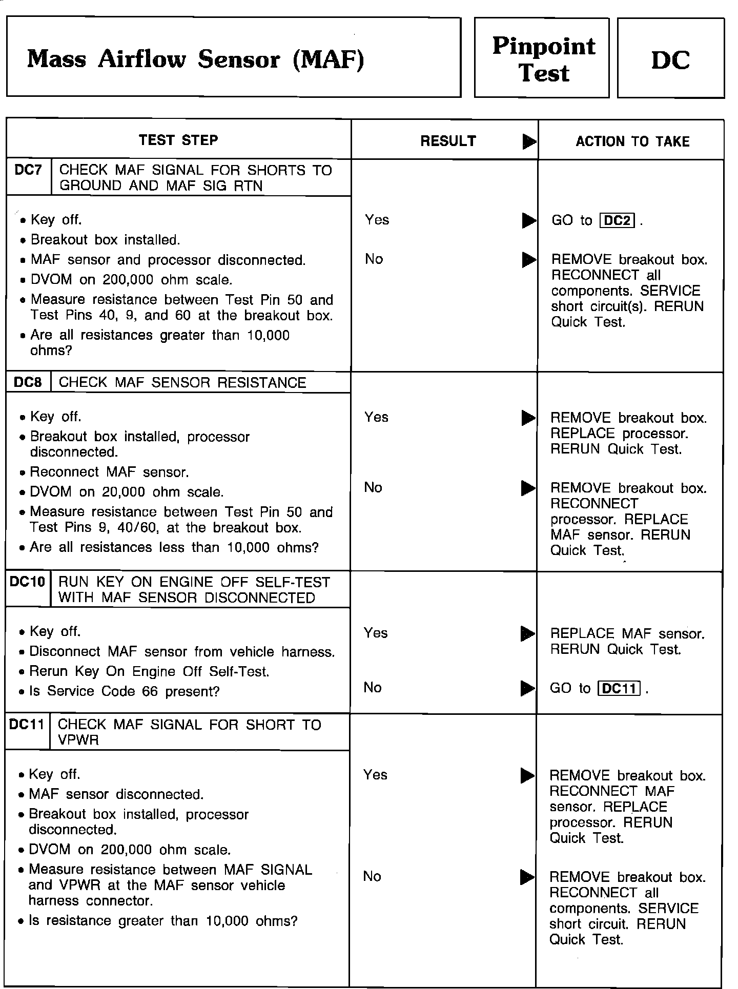 Pinpoint Test DC7 Thru DC11 - Mass Airflow Sensor (MAF):